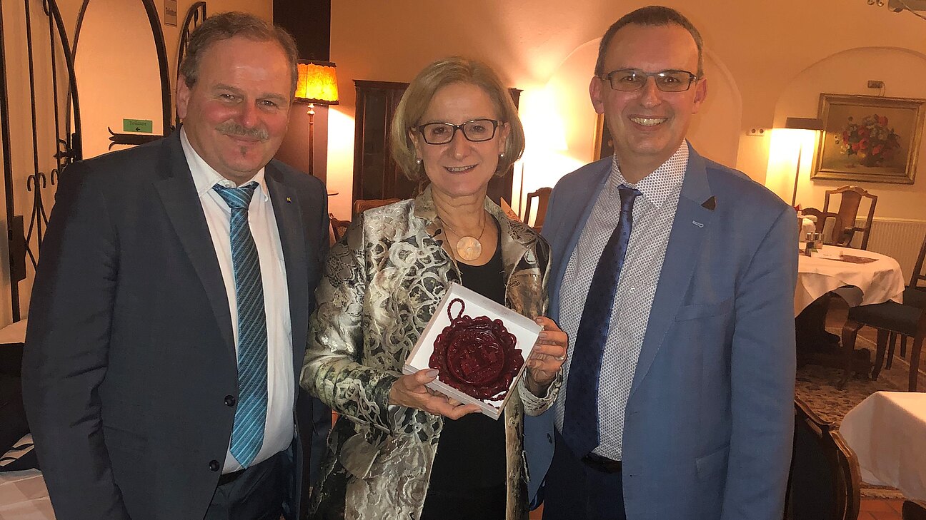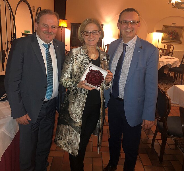 Am 15. und 16. Jänner 2019 fand in der Liebnitzmühle eine Klausur des Regierungsteams der Volkspartei Niederösterreich unter Vorsitz von Landeshauptfrau Mag. Johanna Mikl-Leitner statt. Bei dieser Tagung wurden die Schwerpunkte für die künftige Regierungsarbeit festgelegt. Besonders betont sollen die Themenbereiche Arbeit, Gesundheit, Mobilität und Familie werden. Am Rande der Klausurtagung waren BR Bgm. Ing. Eduard Köck und Bgm. Mag. Rudolf Mayer zu einem gemeinsamen Abendessen mit den Klausurteilnehmerinnen und –teilnehmern geladen. Dabei konnte in lockerer Atmosphäre abseits des Protokolls ein Meinungsaustausch mit sämtlichen anwesenden Regierungsmitgliedern wie LH-Stv. Stephan Pernkopf, LR Dr. Petra Bohuslav, LR Mag. Christiane Teschl-Hofmeister, LR DI Ludwig Schleritzko oder LR Dr. Martin Eichtinger erfolgen. Ebenso vertreten waren u.a. die Landtagspräsidenten Mag. Karl Wilfing und Mag. Gerhard Karner sowie VP-Landesgeschäftsführer LAbg. Ing. Bernhard Ebner. Im Anschluss an das Abendessen übergab Bgm. Mag. Rudolf Mayer an die Landeshauptfrau zur Erinnerung an die Regierungsklausur das Wachssiegel der Stadt Raabs/Thaya.